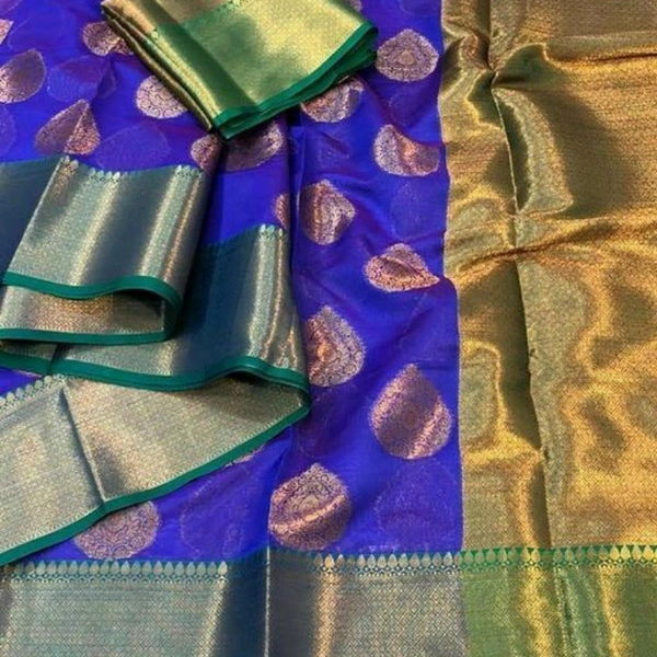 Saree Fabric: Banarasi Silk Blouse: Separate Blouse Piece Blouse Fabric: Banarasi Organza Silk Pattern: Woven Design Multipack: Single Sizes: Free Size (Saree Length Size: 5.5 m, Blouse Length Size: 0.9 m) Dispatch: 1 Day