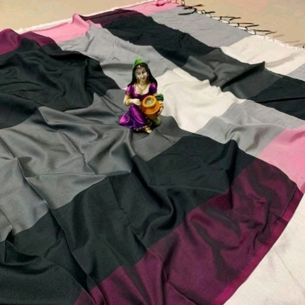 Colorblocked Art Silk Sarees With Tassels And Latkans