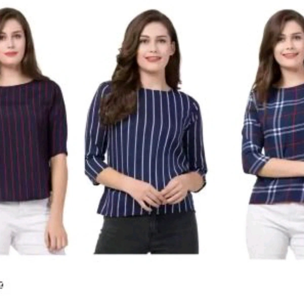 Fabric: Crepe Sleeve Length: Three-Quarter Sleeves Pattern: Printed Multipack: 3 Sizes: S (Bust Size: 36 in, Length Size: 23 in) M (Bust Size: 38 in, Length Size: 24 in) L (Bust Size: 40 in, Length Size: 24 in) XL (Bust Size: 42 in, Length Size: 25 in) XXL (Bust Size: 44 in, Length Size: 26 in) Dispatch: 2-3 Days