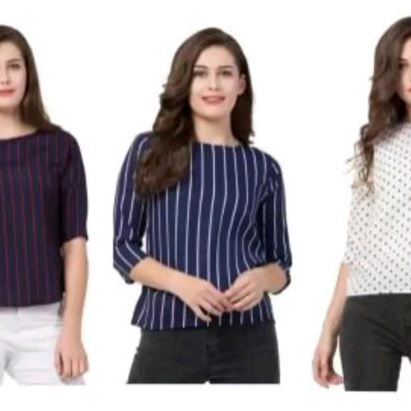 Fabric: Crepe Sleeve Length: Three-Quarter Sleeves Pattern: Printed Multipack: 3 Sizes: S (Bust Size: 36 in, Length Size: 23 in) XL (Bust Size: 42 in, Length Size: 25 in) L (Bust Size: 40 in, Length Size: 24 in) M (Bust Size: 38 in, Length Size: 24 in) Country of Origin: India