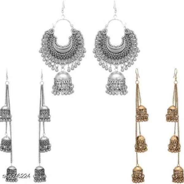 Base Metal: Alloy Plating: Oxidised Silver Stone Type: Artificial Beads Sizing: Adjustable Type: Jhumkhas Multipack: 3 Dispatch: 1 Day