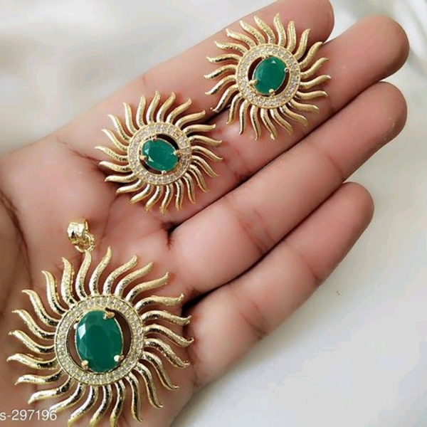 Material: American Diamond Description: It Has 1 Piece Of Pendant & 1 Pair Of Earring Work: Stone & Beads Work Country of Origin: India