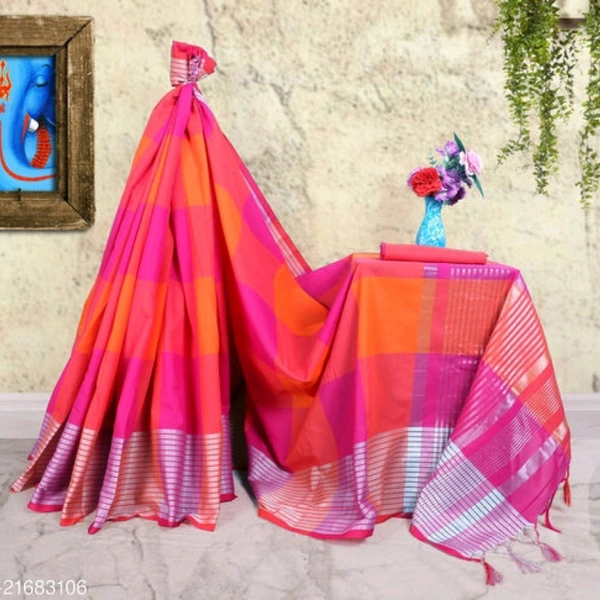 Saree Fabric: Cotton Blend Blouse: Running Blouse Blouse Fabric: Cotton Pattern: Checked Blouse Pattern: Same as Saree Multipack: Single Sizes: Free Size (Saree Length Size: 5.5 m, Blouse Length Size: 0.8 m) Dispatch: 2-3 Days