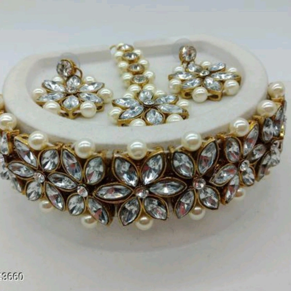 Base Metal: Alloy Plating: Gold Plated Stone Type: Artificial Stones Sizing: Adjustable Type: Necklace Earrings Maangtika Multipack: 1 Description: 1 Necklace, 1 Pair Of Earrings, 1 Maangtika Dispatch: 1 Day