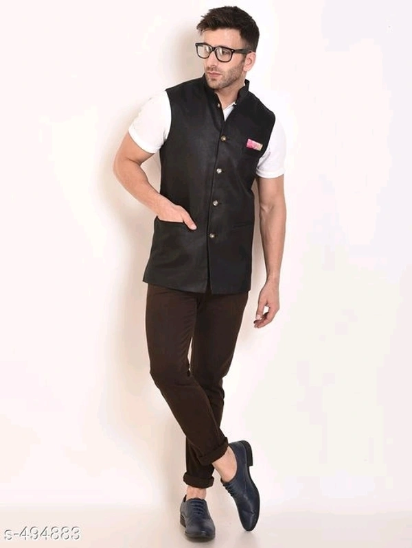 Fabric: Jute Sleeves: Sleeves Are Not Included Size: S- 36 in, M- 38 in, L- 40 in, XL- 42 in, XXL- 44 in, 3XL- 46 in Length: Up To 25 in Type: Stitched Description: It Has 1 Piece Of Men's Ethnic Waistcoat Pattern: Solid Dispatch: 1 Day