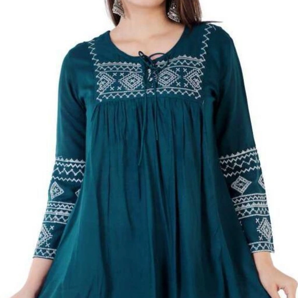 Fabric: Rayon Sleeve Length: Three-Quarter Sleeves Pattern: Embroidered Multipack: 1 Sizes: XL (Bust Size: 42 in, Length Size: 30 in) L (Bust Size: 40 in, Length Size: 30 in) M (Bust Size: 38 in, Length Size: 30 in) XXL (Bust Size: 44 in, Length Size: 30 in) S (Bust Size: 36 in, Length Size: 30 in) XXXL (Bust Size: 46 in, Length Size: 30 in) Dispatch:1 Day