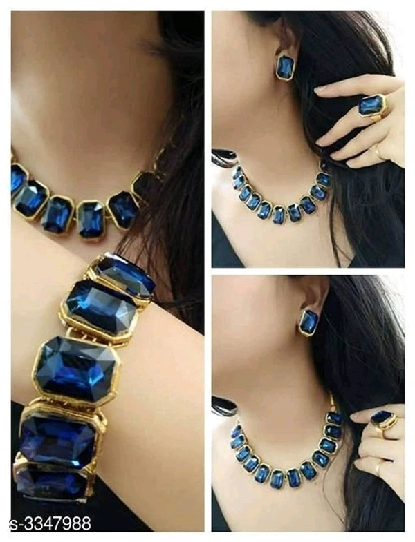 Material: Alloy Size: Free Size Description: It Has 1 Piece of Necklace, 1 Piece Of Ring, 1 Piece Of Bracelet With 1 Pair Of Earring Work: Stone Work Designs: 4 Dispatch: 1 Day Easy Returns Available In Case Of Any Issue *Proof of Safe Delivery! Click to know on Safety Standards of Delivery Partners- https://ltl.sh/y_nZrAV3