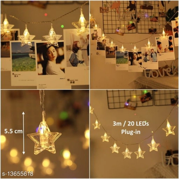 20 Star Photo Clip LED String Light Material: Plastic Waterproof: Yes Pack: Pack of 1 Cable Length: 3 M Country of Origin: India