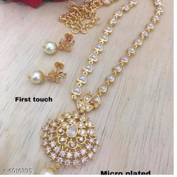 Base Metal: Alloy Plating: Gold Plated Stone Type: Cubic Zirconia Sizing: Adjustable Trend: Pearl Type: Necklace and Earrings Multipack: 1 Dispatch: 1 Day