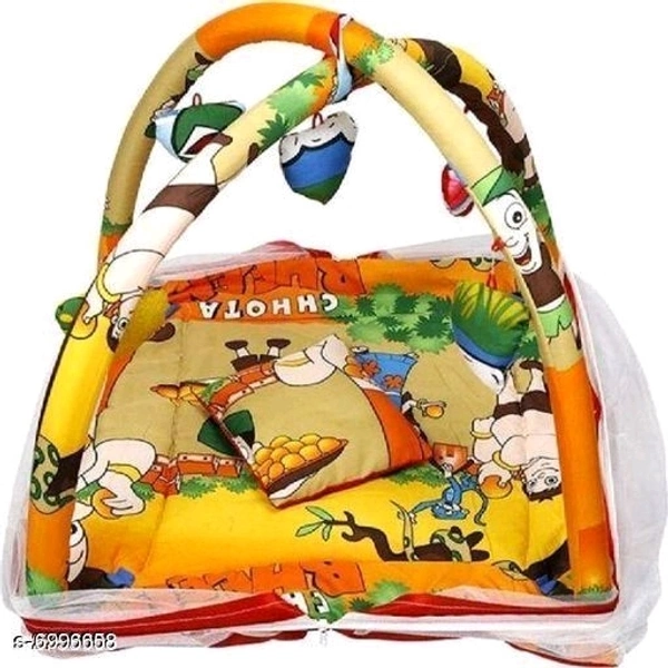 Trendy Polyester Baby Bedding Material: Polyester Size: ( L X H ) - 28 in X 28 in Age Group (0 - 1 Year) - 16 in Description: It Has 1 Piece Of Baby Bedding Set With Mosquito Net, 1 Piece Of Pillow And 5 Pieces Of Hanging Toys Dispatch: 2-3 Days