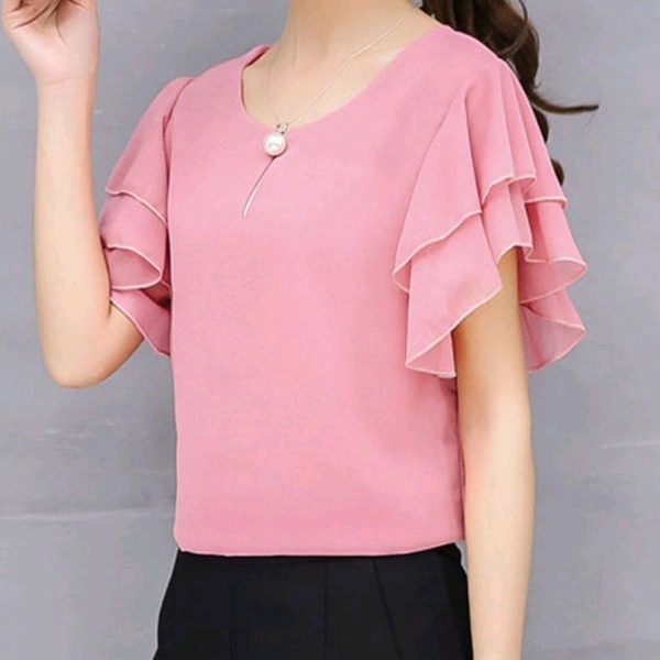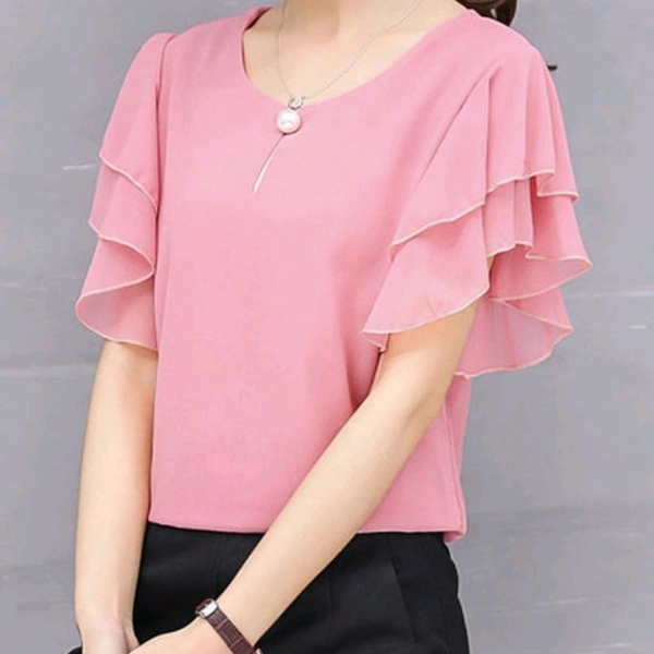 Fabric: Georgette Sleeve Length: Short Sleeves Pattern: Solid Multipack: 1 Sizes: S (Bust Size: 36 in) XL (Bust Size: 42 in) L (Bust Size: 40 in) M (Bust Size: 38 in) Dispatch: 2-3 Days
